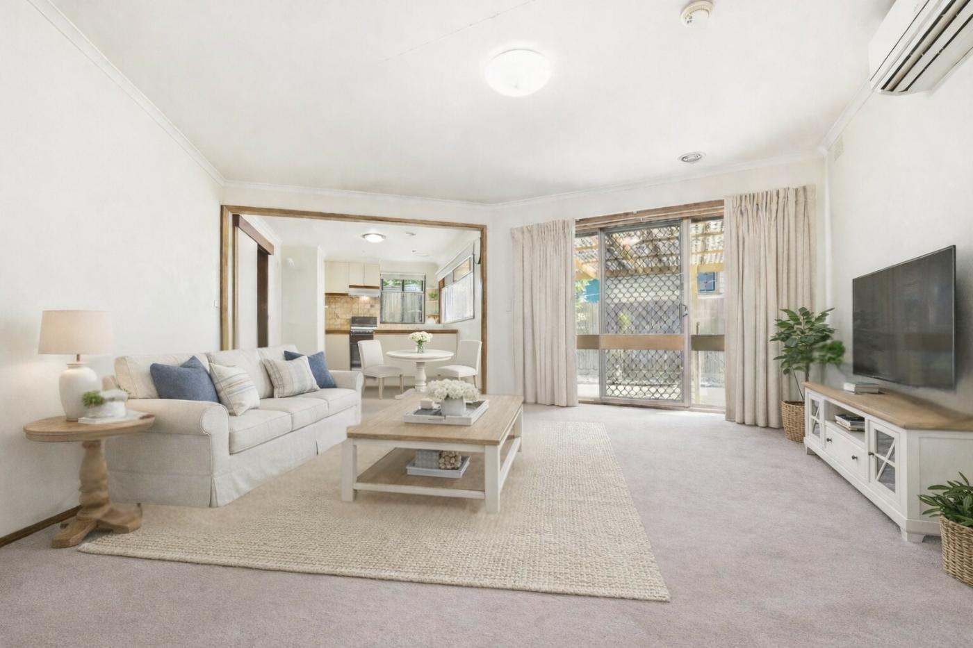 Inside, an inviting open-plan layout is enhanced by natural light, alongside classic pendant lighting which is paired with plush carpet. Privacy is enhanced with roller blinds, curtains throughout and security screen doors. Reverse Cycle AC provides year round comfort, while the home remains tidy and well maintained. A spacious laundry adds practicality and the overall layout is ideal for first home buyers, downsizers or investors.